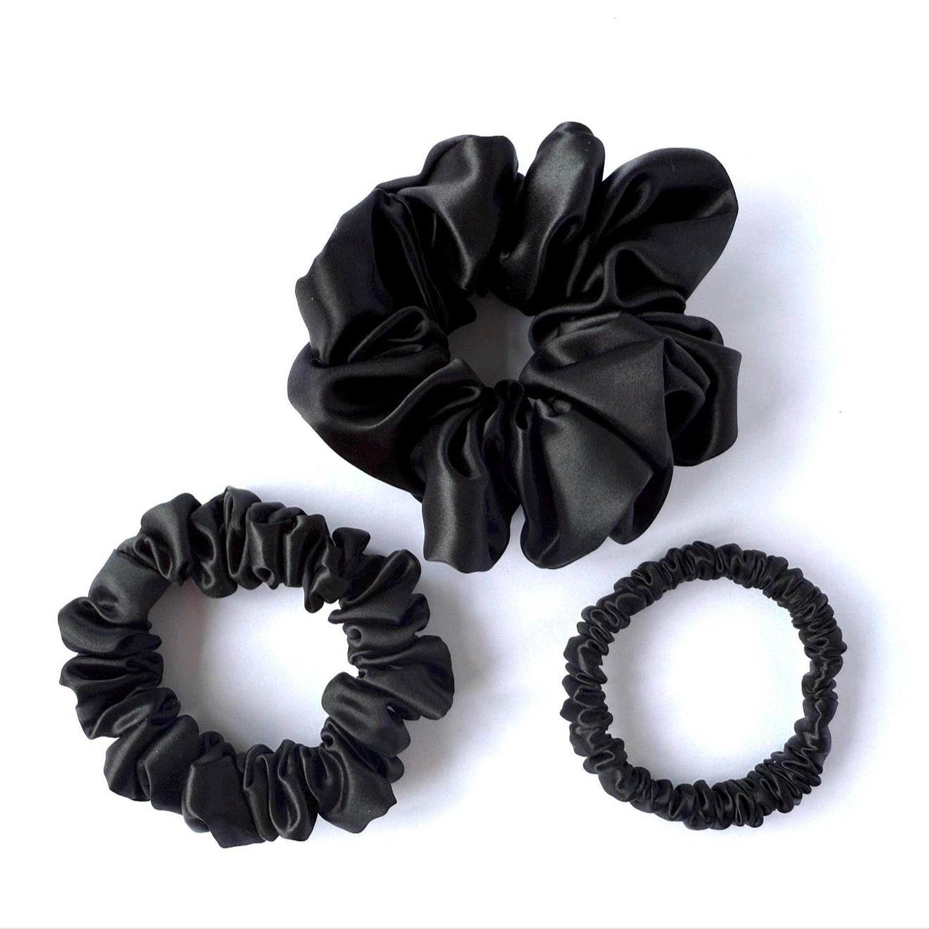 Scrunchie and hair tie trio in smooth and luxurious 22 momme mulberry silk